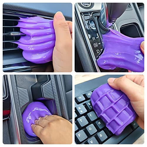 Car Detailing Kit Car Cleaning Gel Universal Car Air Vent Dust Cleaner Car Accessories for Women Men Car Cleaning Supplies Auto Detailing Tools Interior Cleaning Putty Mud Slime for Keyboard PC Purple