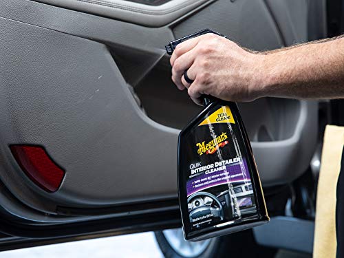 Details: Use Meguiar’s Quik Interior Detailer Cleaner to quickly and easily clean your car’s interior surfaces, including plastics, vinyl, leather, rubber, metal and even LCD and navigation screens. The gentle, high-lubricity formula quickly cleans, lifting dust, dirt, grime and spills while restoring the original appearance of all interior surfaces. Sun-blocking agents in this interior protectant guard against aging, fading, cracking and drying, while an improved deeper cleaning formula leaves a dark, rich shine without a greasy appearance or feel. Great for fast touch-ups, this interior car cleaner comes in a convenient spray bottle for easy application.