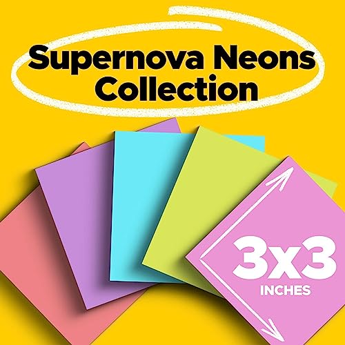 Post-it Super Sticky Notes, 24 Note Pads, 3×3 in., 2x the Sticking Power, School Supplies and Office Products, Sticky Notes for Vertical Surfaces, Monitors, Walls & Windows, Supernova Neons Collection